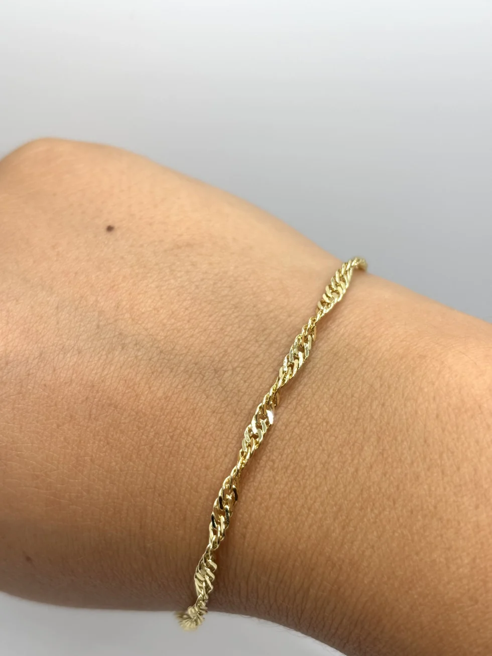 Bracciale dorato dal design intrecciato e luminoso, elegante e versatile. Il Bracciale Ambra è un accessorio essenziale che dona luce ad ogni look.