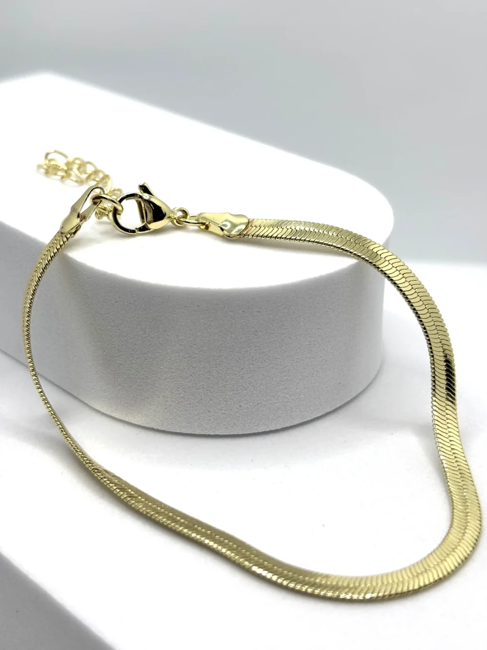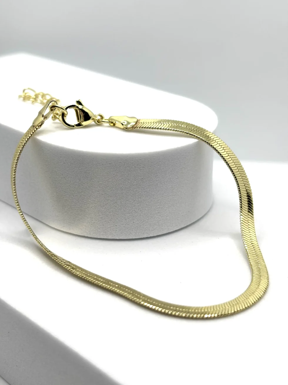 Bracciale snake piatto in acciaio inox dorato. Luminoso, raffinato e dal design minimal, perfetto per ogni occasione.