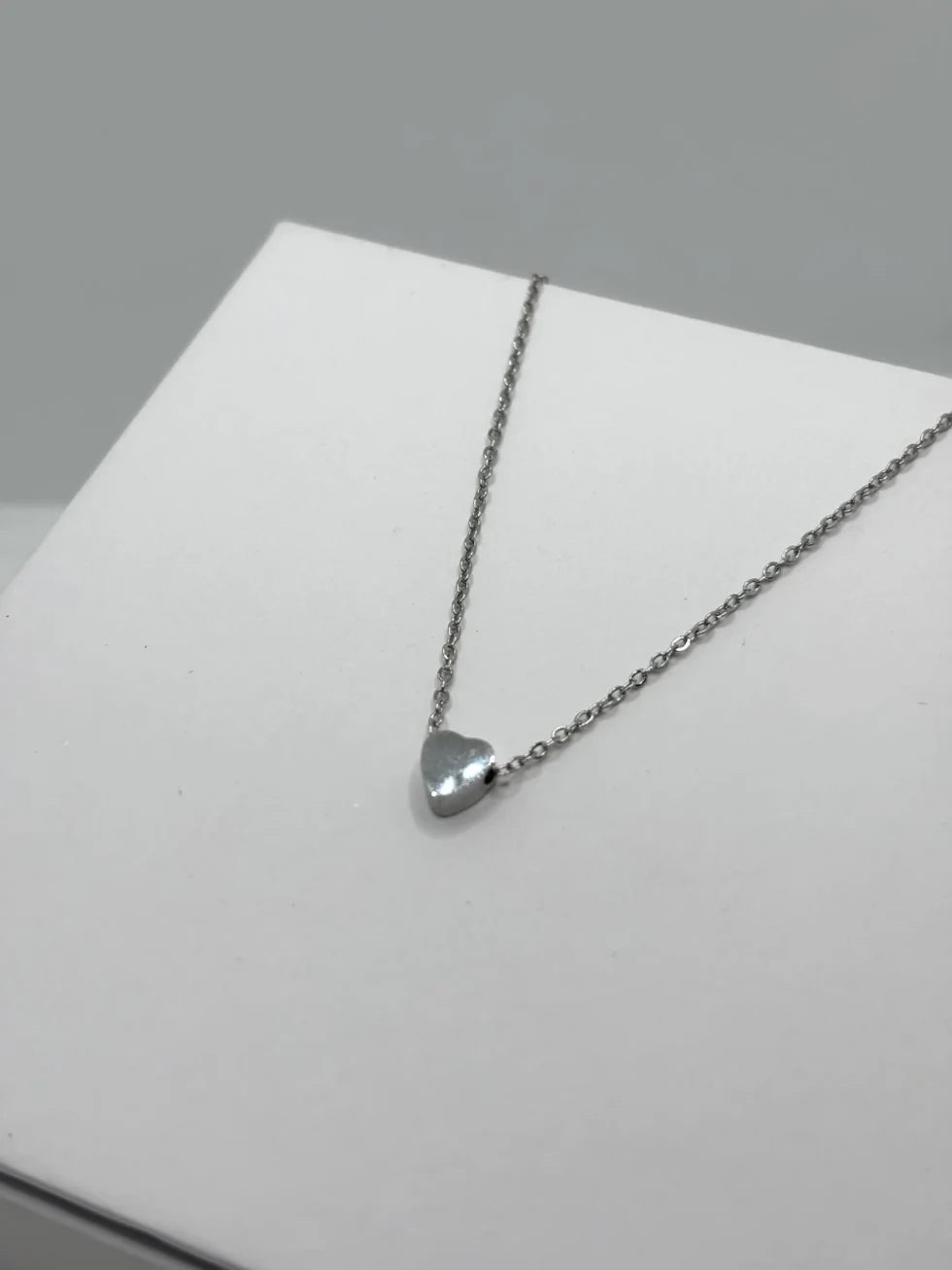 Collana in acciaio inox disponibile in oro e argento, con ciondolo a cuore minimal. Un simbolo senza tempo, perfetto per ogni giorno e come idea regalo.