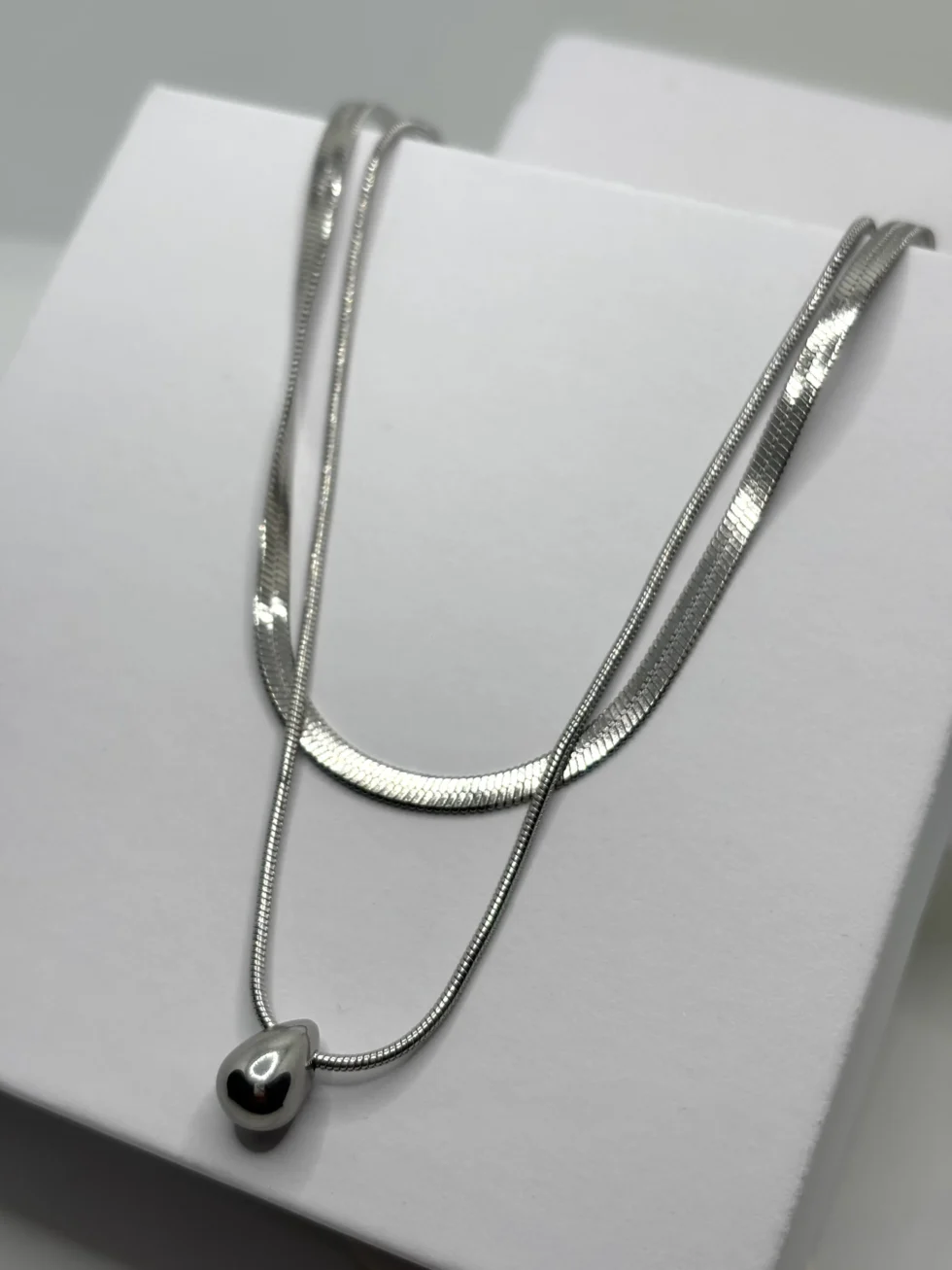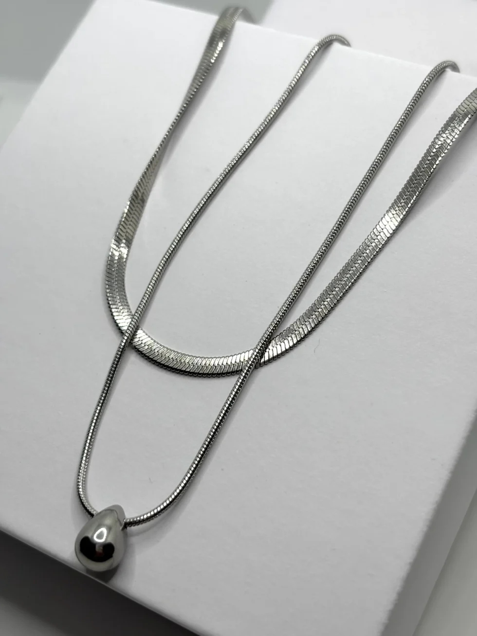 • Design: Doppia catena (piatta + snake) con pendente a goccia