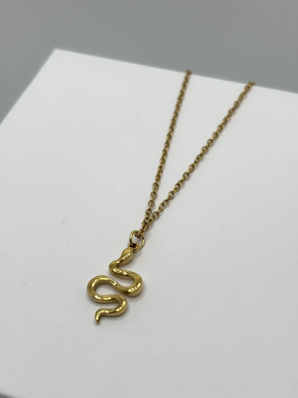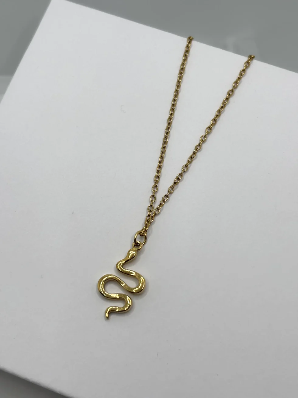 Collana in acciaio inox dorato con pendente a serpente. Un gioiello dal design simbolico e affascinante, perfetto per chi ama accessori decisi e originali.